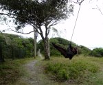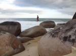 Umówiliśmy się finalnie z Thiago, że spotkamy się w takim razie w Brazylii i pojedziemy z nim i jego dziewczyną ze Stanów – Brooke na wyspę Ilha do Mel. Rogi niestety musiał pracować. Spotkaliśmy się na dworcu w Curitibie i stamtąd autobusem i promem dotarliśmy na wyspę. Pogoda do kąpieli się nie nadawała, ale wszyscy chodziliśmy z kąpielówkami w plecaku, tak na wszelki wypadek. Wyspa wyglądała na opustoszałą, porośnięta miejscami gęstą dżunglą, przez którą bez ścieżki nie dało się przedrzeć. Nie ma tam ruchu samochodowego, można chodzić tylko na piechotę albo jeździć na rowerach. Momentami wyspa jest bardzo wąska, ma zaledwie 50m, a mimo to stoją tam chatki. Byliśmy jedynymi gośćmi małego hosteliku, który przypominał nam „Werandę” w Jastarni. Poza sezonem więc zero komercji, nie widać żywego ducha, nie licząc chmary ptaków. Właśnie rozpoczął się sezon na rybę „tinha” (pol. mugilowate) więc ją spałaszowaliśmy na kolację. Połaziliśmy po wyspie gdzie tylko się dało, tzn na co pozwolił nam wysoki stan wód.