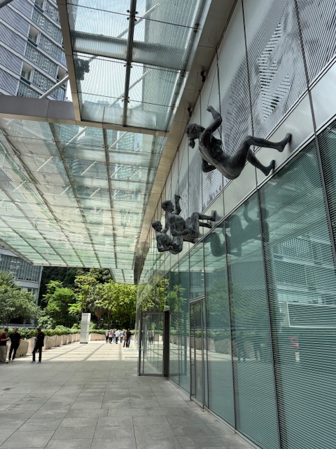 Wzbijając się na wyżyny cierpliwości i empatii podjechaliśmy taksówką pod wieże Petronas Towers- niegdyś najwyższą budowlę świata, aktualnie najwyższe na świecie bliźniacze wieże. W jednej z wież mieszczą się biura firmy Petronas- kolokwialna nazwa Petroliam Nasional Berhad (malezyjskiego koncernu naftowego i gazowego), a druga wynajmuje swoje biura licznym firmom. Ponadto budynek mieści centrum handlowe, salę koncertową, galerie sztuki i sklepy. Wieże były budowane w tym samym czasie przez 2 różnych wykonawców- Japończyków i Koreańczyków, by w ten sposób konkurowali ze sobą w szybkości budowy. Zmieścili się w przewidzianym czasie-sześciu latach.