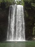 Zupełnie przypadkiem, na skutek ostatnich ulew w Queensland i zamknięcia licznych dróg, znaleźliśmy się na trasie obfitującej w wodospady, rzeki i góry, co nas bardzo ucieszyło gdyż mieliśmy gwarancję codziennych pryszniców w wodospadzie bądź jeziorze. Region ten leży w głębi lądu na zachód od Cairns i nazywa się Tablelands. Tutaj też znajdują się góry Misty Mountains, które są malownicze, lecz kiepsko oznaczone więc ciężko dotrzeć do jakiegokolwiek punktu widokowego. Zamiast wejść na szczyt okrążyliśmy jedną górę. Kolejny trekking prowadził wzdłuż odchodów dzikiej świni, a może wombata. Nasz kolega z Mount Isa by się pewnie ucieszył, ale my przemierzaliśmy szlak na paluszkach, tym bardziej, że kilkakrotnie coś dużego szeleściło w krzakach. Świnia, na nasze szczęście, nie chciała nas poznać osobiście.
